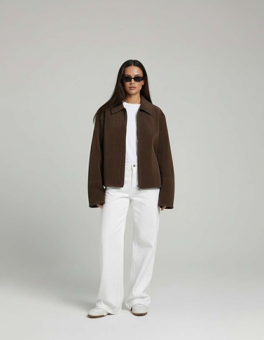 Elevate your look with the Velours Suede Jacket!